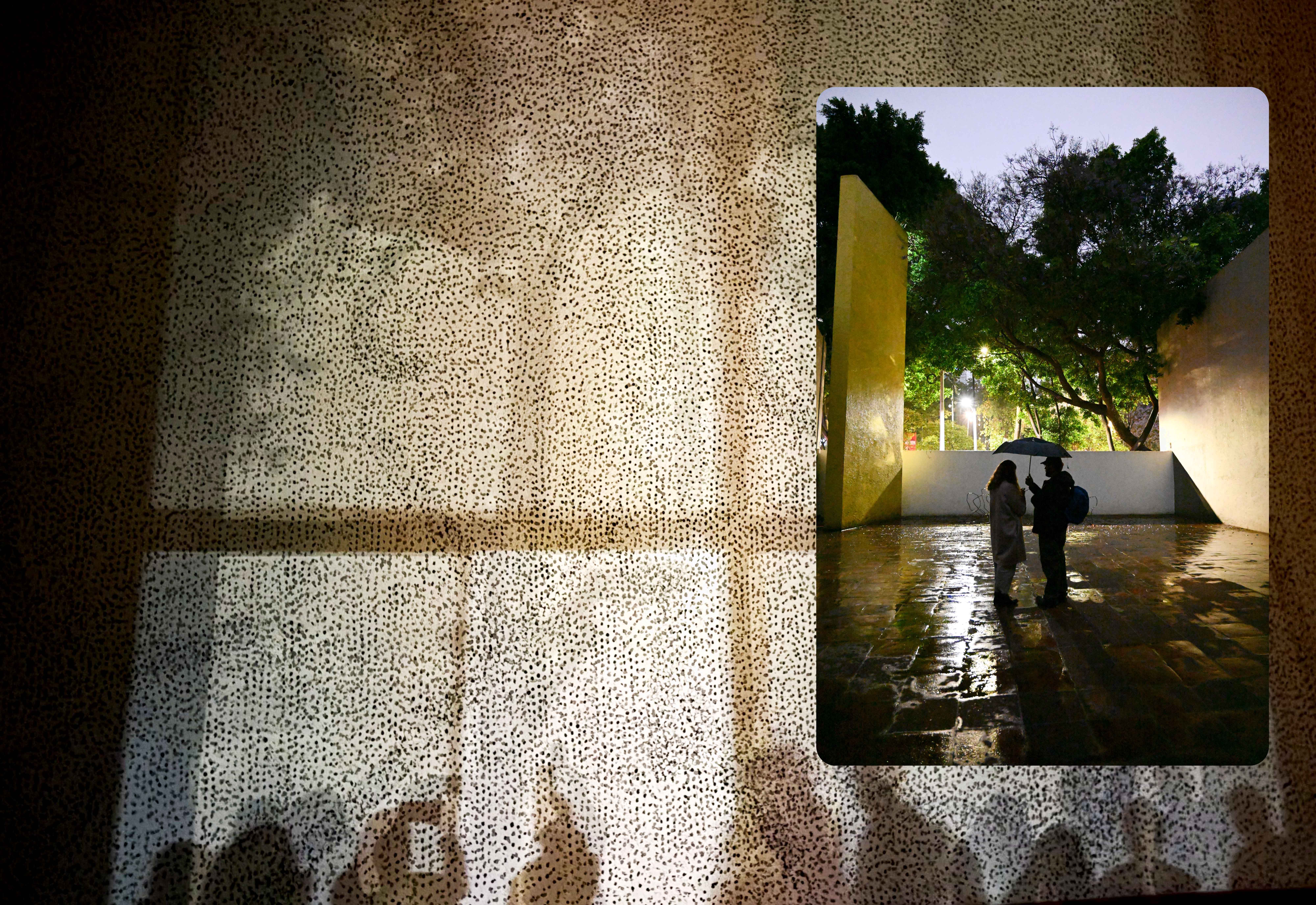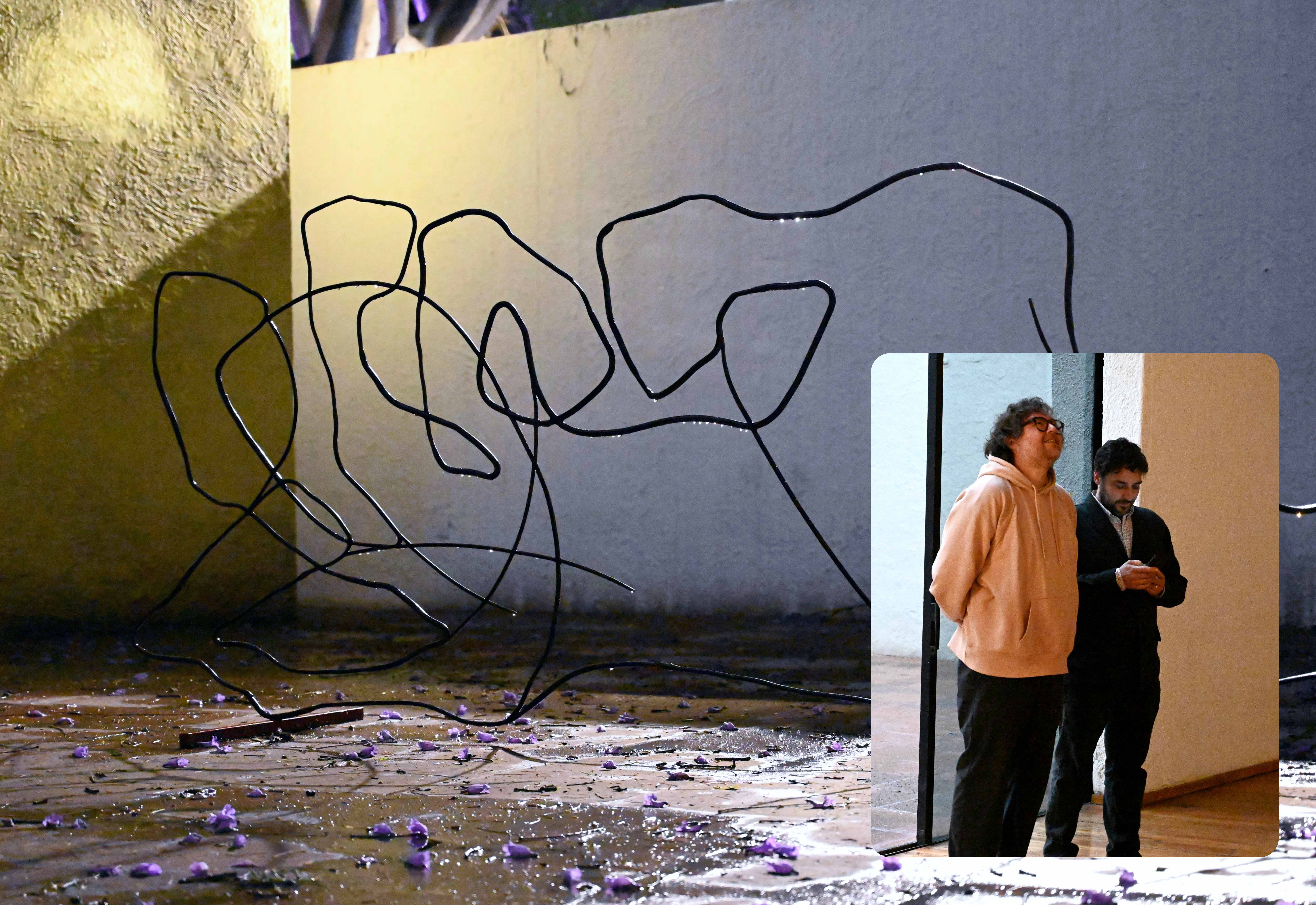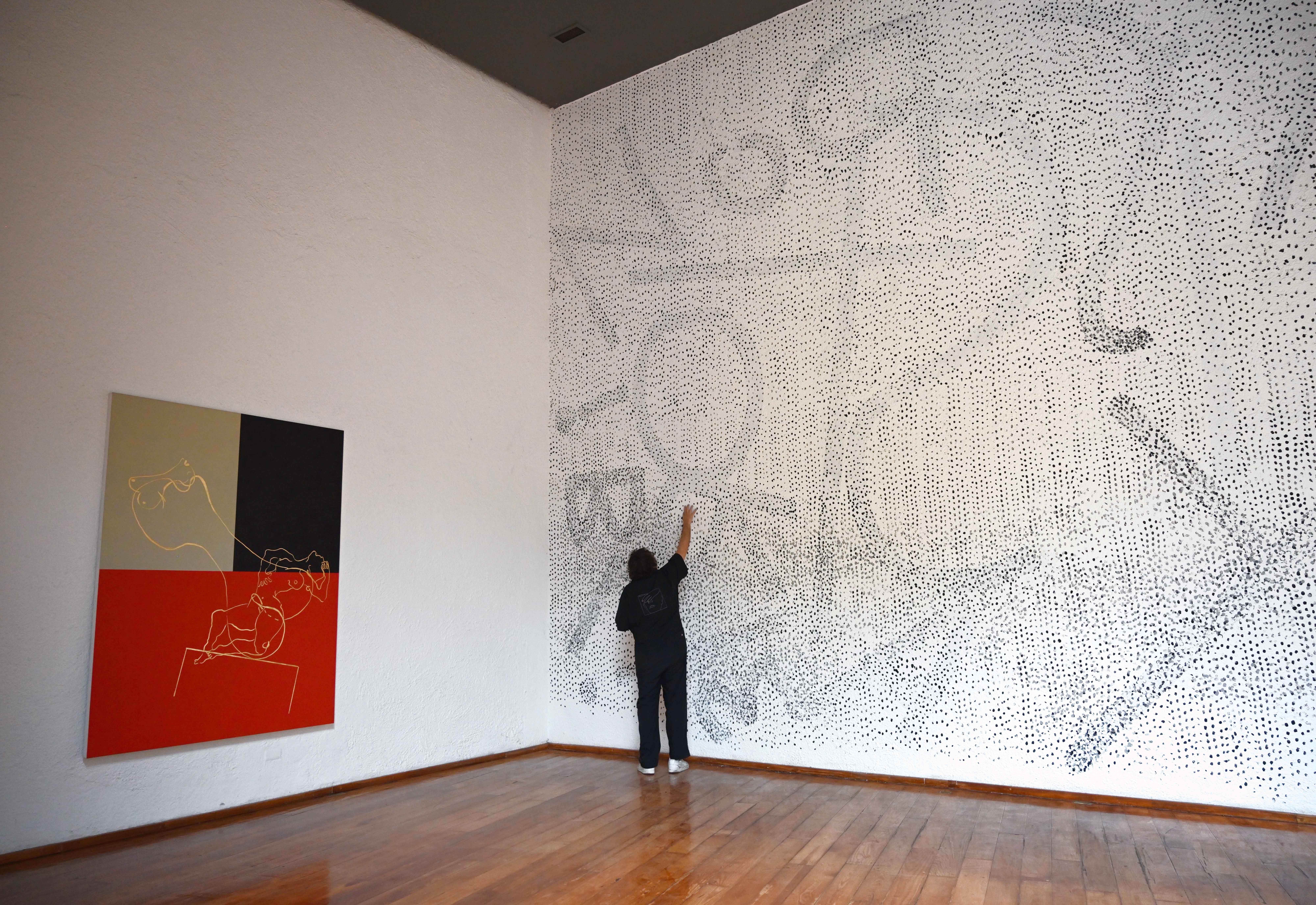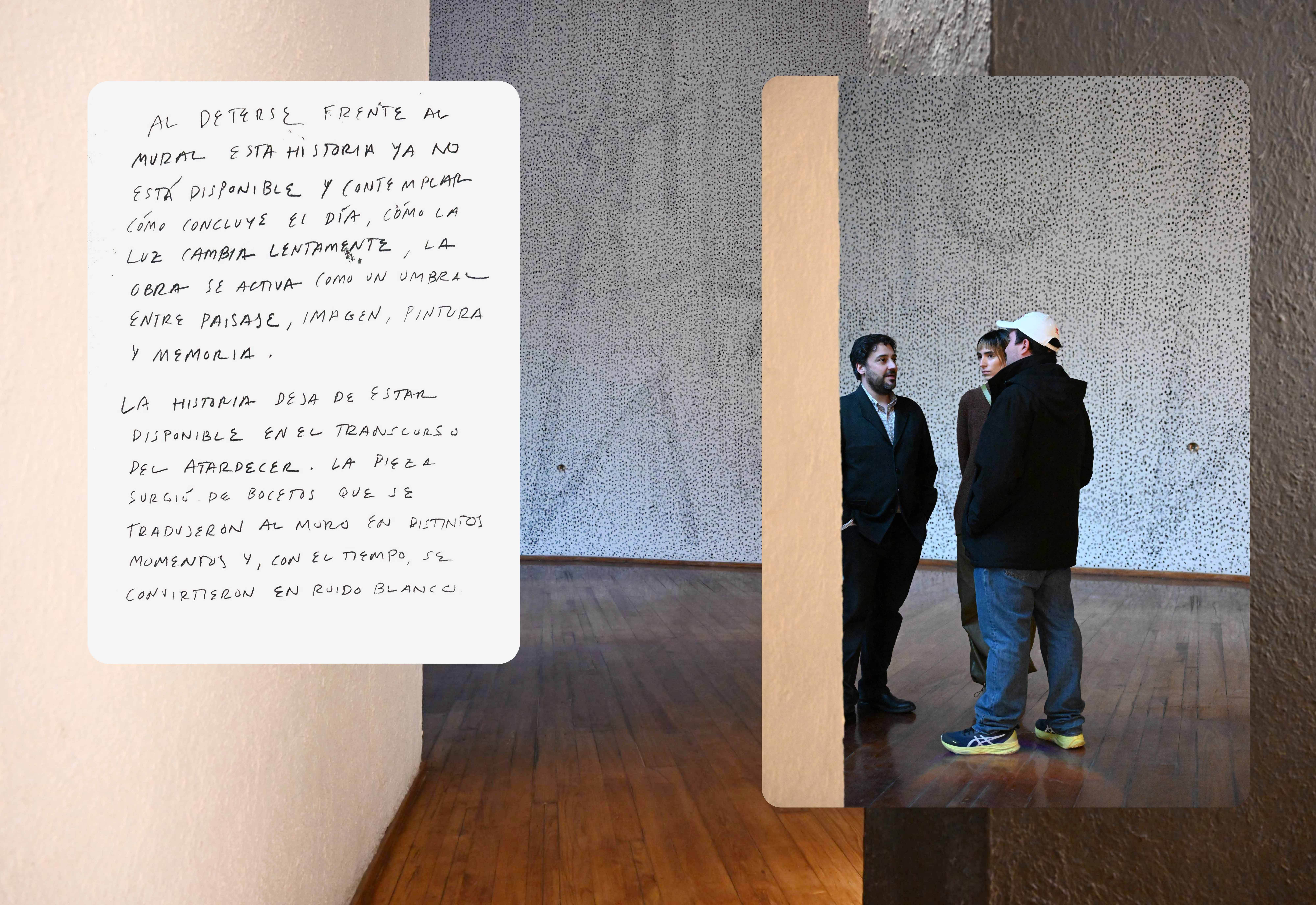 La historia deja de estar disponible en el transcurso del atardecer. La pieza surgió de bocetos que se tradujeron al muro en distintos momentos y, con el tiempo, se convirtieron en ruido blanco.